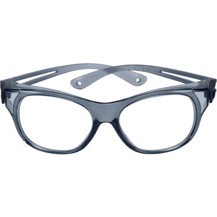 The ultra covering rounded grey frame offers versatility and protection. Pivoting temples enable compatibility with other PPE and is ideal for wide fitting larger faces. Lightweight, ultra covering frame for maximum protection Pivoting temples to adjust protection Rounded shape.